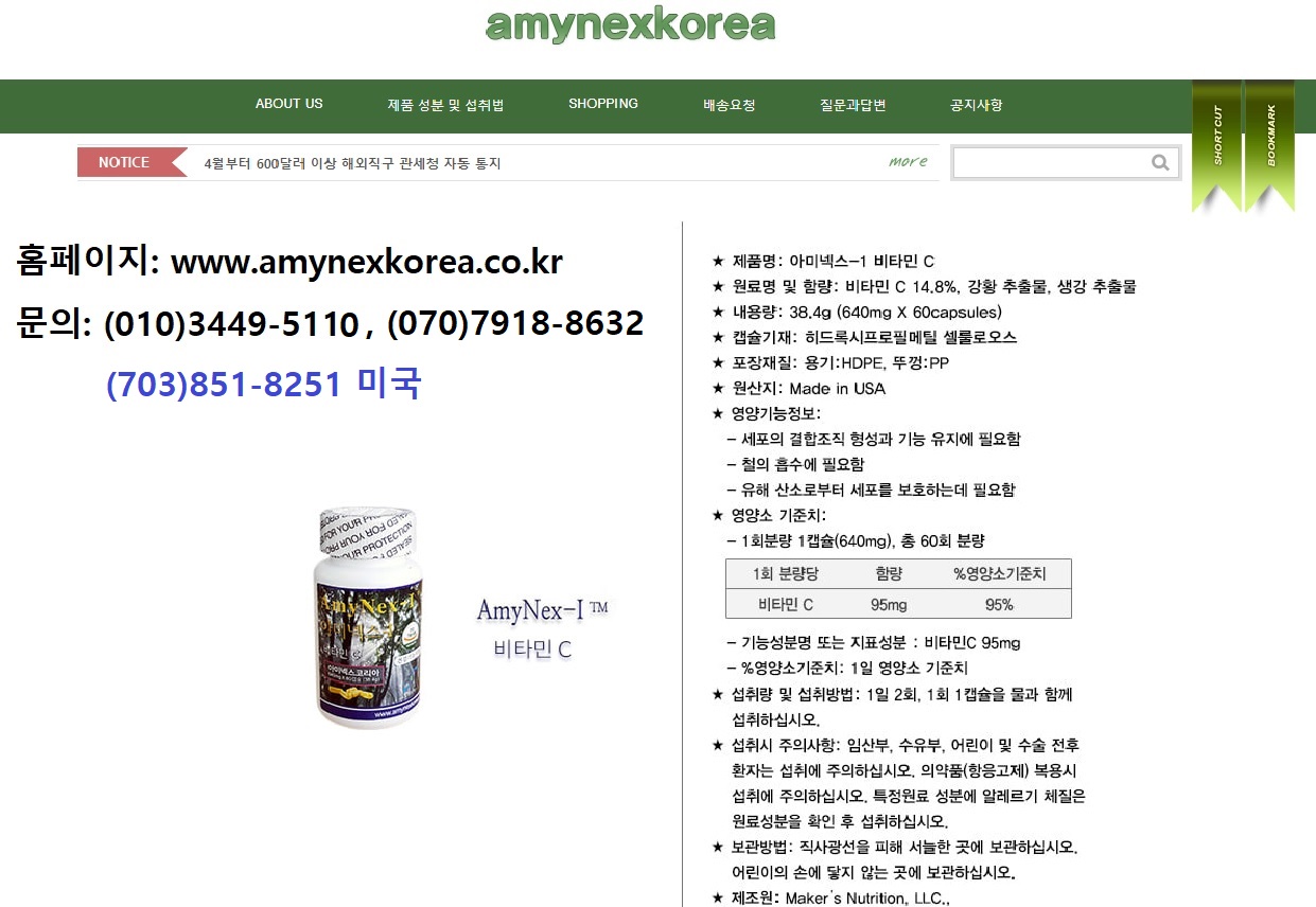 참고로 한글 라벨 아미넥스-I 비타민C 및 알파씰 비타민B12는 한국 식약처로부터 공식 건강기능식품으로 인정받아 판매되고 있으며 아미넥스 코리아가 한국 공식 판매처입니다.