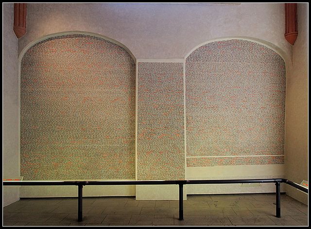 예배당 벽에는 나치에게 희생된 77,297명의 이름이 빼곡히 적혀 있다.