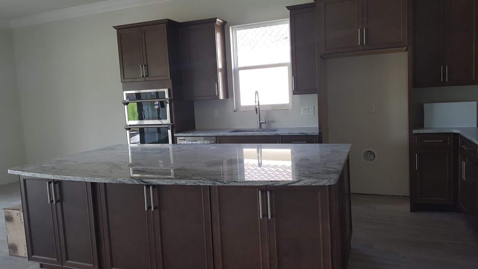 모던하고 넓직한 키친, 층고 높은 거실이 깔끔해 보이죠.