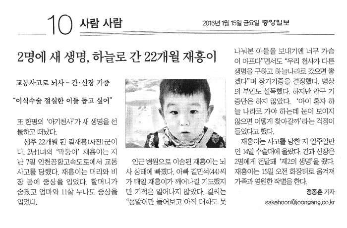 /뇌사/교통사고/장기기증)아기천사