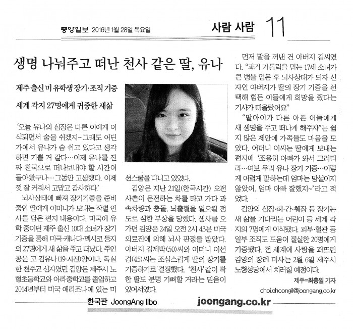 故김유나(2016년1월21[목]일/교통사고&뇌사
