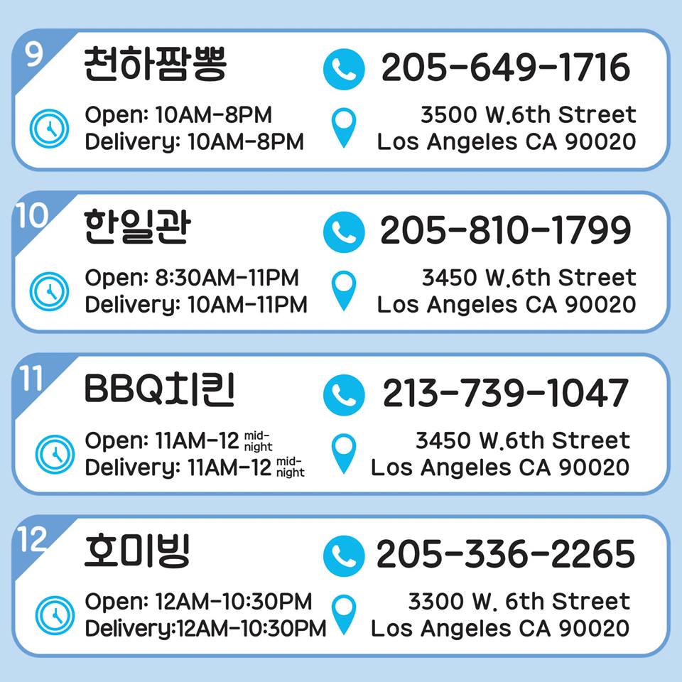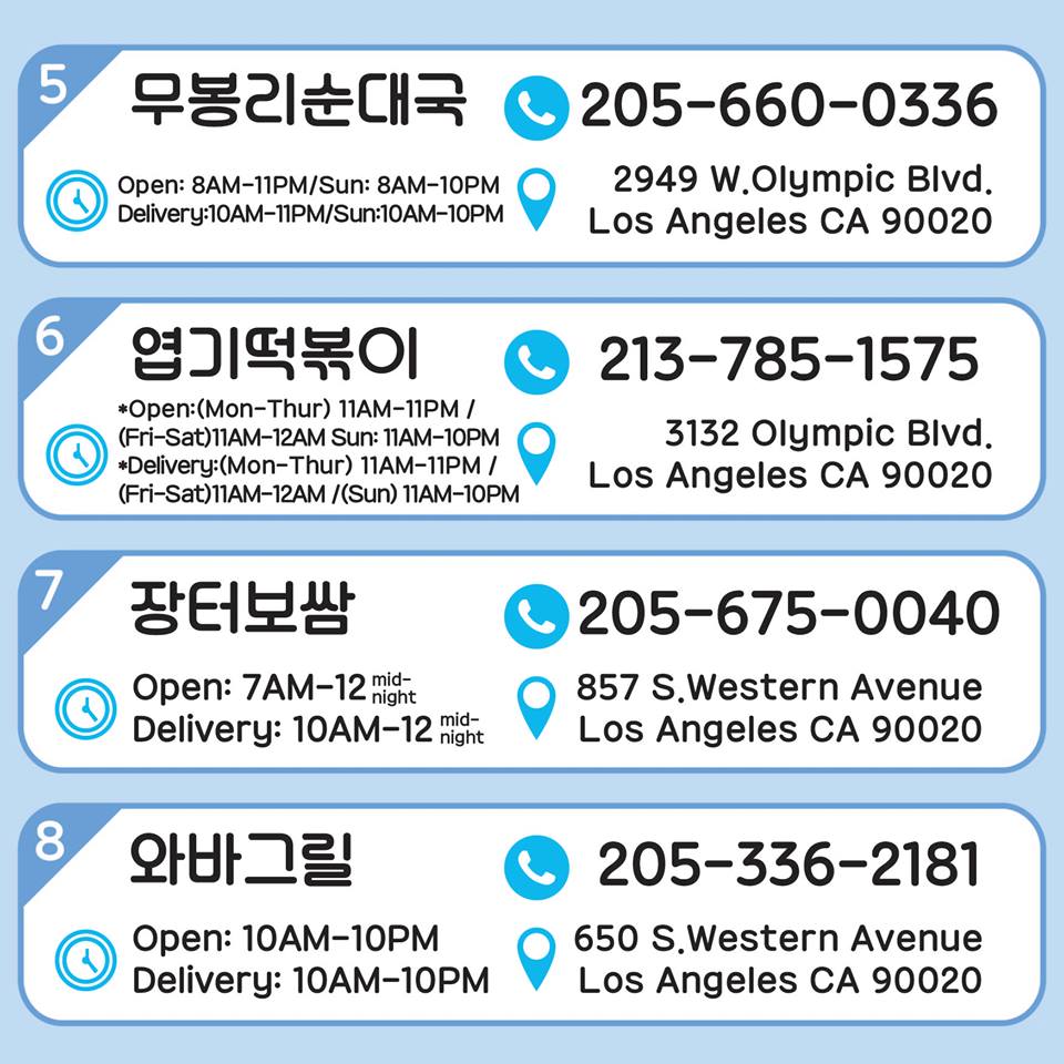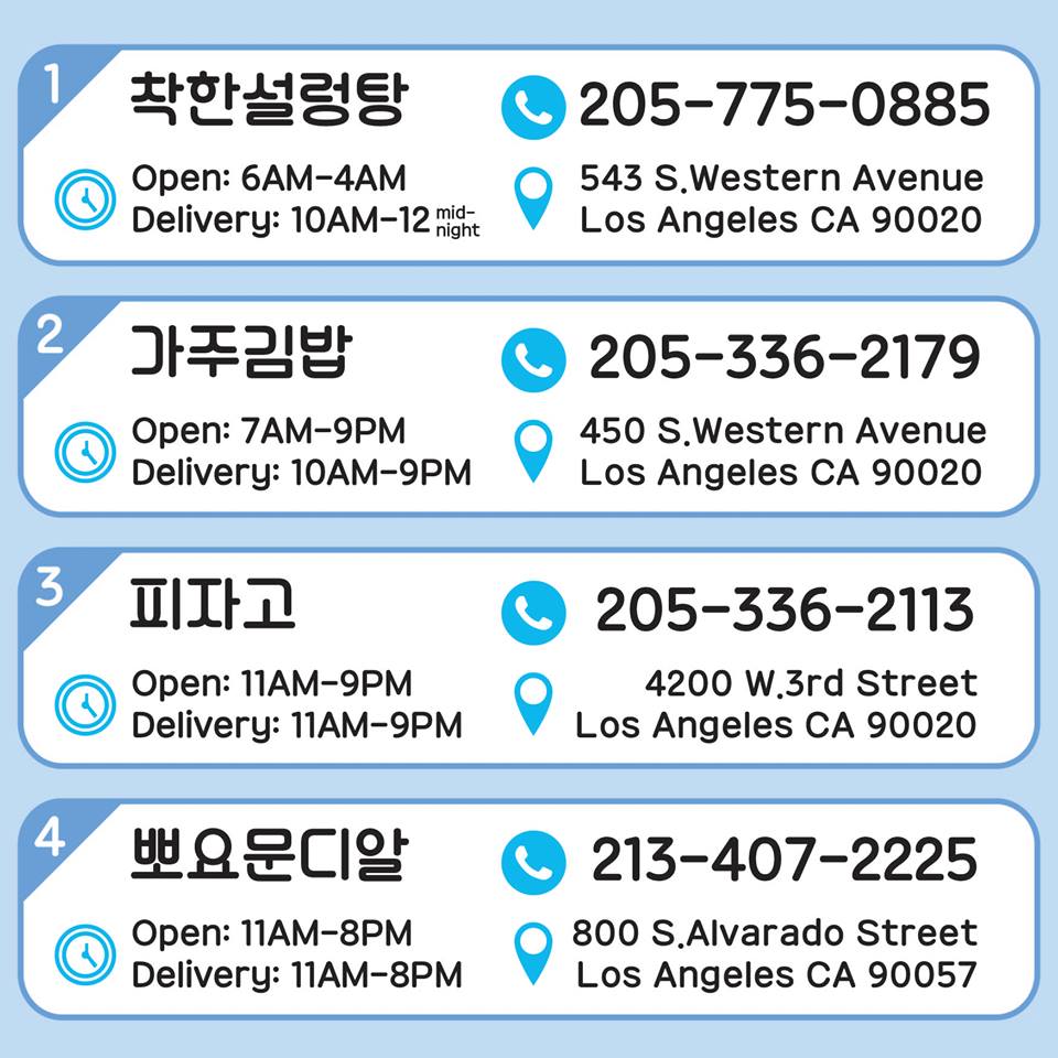 한인타운 구역별 배달음식#1