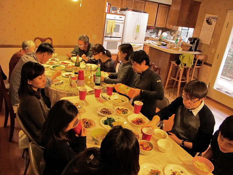 모두들 식탁에 둘러앉아 우리들의 하느님께 지난해 베풀어주신 은혜에 감사 드리고