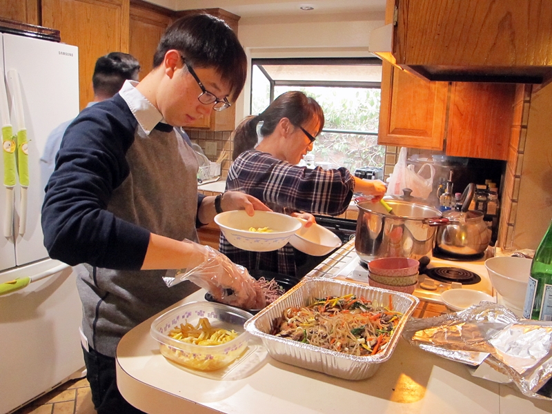 부억에서는 큰딸이 작은 독수리 매튜의 도움을 받으며 떡국을 준비하고 있었고,