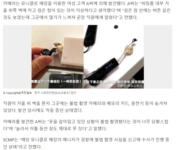 중국 유니클로 피팅룸 속 검은 점, 뭔가 봤더니…