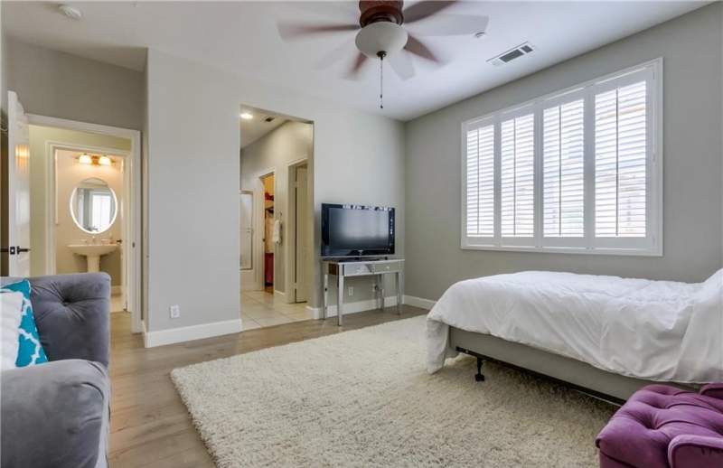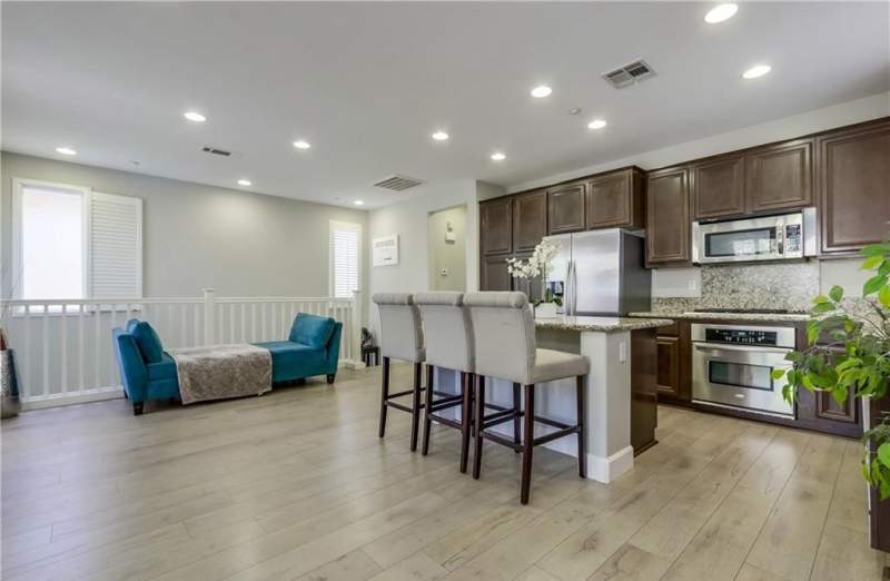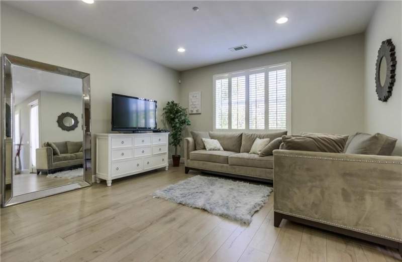Welcome to Sienna at Renaissance Plaza, an enclave of 39 detached single family homes located minutes to Stanton Central Park with tennis and basketball courts, baseball fields, water play area, skate park, butterfly garden and much more. Step into 8045 Sorrento Lane, a two story home featuring an open floorplan with recently updated premium Santa Fe Navajo microbeveled laminate flooring throughout, double pane windows, plantation shutters, premium paint, recessed lighting, tankless water heater and a balcony, perfect for warm summer nights. Enter the main floor featuring direct access to the garage, inside laundry including LG washer and dryer, storage nook with granite counter, and a bedroom suite with its own private bathroom. Upstairs, you will find a great room showcasing a large kitchen island with breakfast bar, espresso cabinets, granite countertops, and stainless steel Whirlpool appliances including a Samsung stainless steel refrigerator, and guest bathroom with pedestal sink. The Master en suite includes a double sink vanity, shower in tub, water closet, and spacious walk in closet. Centrally located to Disneyland and Knotts Berry Farm, within Garden Grove school district, don't miss your opportunity to be part of this vibrant community.