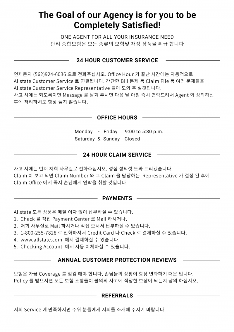 Cerritos 한장소에서 19년 동안 Service를 제공해온 단리 종합보험입니다. 2018.05.18