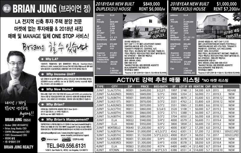 신문광고2018-10-31일자(수요일) 중앙일보 경제면2018.10.30- 신문광고2018-10-17일자(수요일)중앙일보 경제면추천: 1.인컴 유닛 정말 HOT 합니다 현재 코리아타운NORTH HOLLYWOOD ELASLA에 새로짓는 2-4유닛 포켓리스팅 많이 있습니다 …