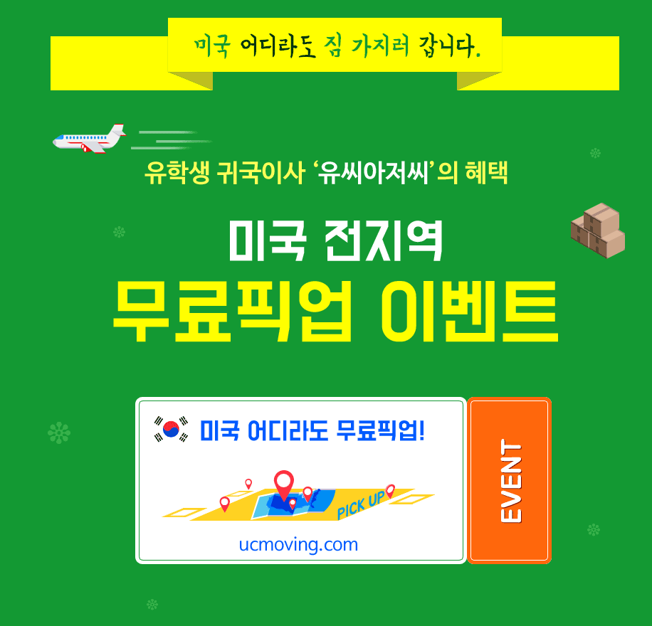 • 귀국이사 새단장 이벤트 유씨아저씨 미국 전지역 무료픽업 이사박스 구매 배송서비스 시작