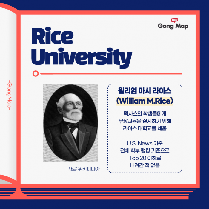 공맵대학백과 남부의 명문 라이스 대학교(Rice University) 2023.11.14 - 안녕하세요국제 학교 글로벌 명문대 유학 교육 대표 플랫폼공맵입니다:)오늘 여러분들에게 소개해 드릴 대학교는바로 남부의 하버드 대학교라고 불리는텍사스의 최상위 명문대학교라이스 대학교(Rice University)에 대해알려드…