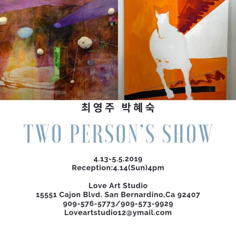 엘에이에서 한시간 거리 샌 버나디노에 위치한 예술 사랑 Love Art Studio 에서 최영주 amp 박혜숙 전시회(4.13-5.5 2019)가 열린다.39비우니 비로소 보이는 우주39 라는 깨달음으로 화폭의 울림이 더욱…