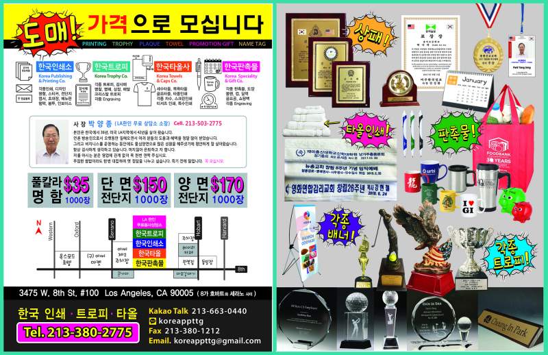 - 한국인쇄소/트로피/판촉물/타올사LOS ANGELES / CA