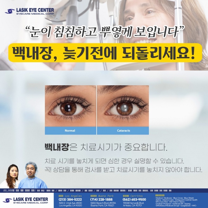 노화로 수정체가 혼탁해지는 백내장 치료시기가 중요합니다 | 김연진 종합… 2021.04.08 - 백내장은 노화로 눈 속의 수정체가 혼탁해지는 질환입니다. 누구에게나 올 수 있는 질병입니다. 백내장은 한번 시작되면 자연치유는 불가능하기 때문에 평소 눈이 침침하거나 뿌옇게 보이는 등의 증상이 보인다면 상담을 통해 검사를 …