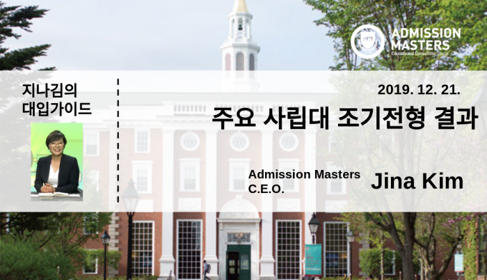 2019년 가을학기 신입생(Class of 2023) 선발을 위한 조기전형 결과가 발표됐다.경쟁은 희비를 남기기 마련이다. 합격자들에게는 축하를 원하는 결과를 얻지 못한 학생들에게는 위로와 함께 정시전형에서 좋은 결과를 얻…