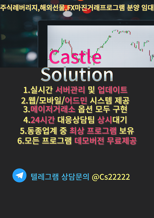 주식레버리지 해외선물 FX마진 프로그램 분양임대 텔레@Cs2222… 2024.09.18 - 분양임대개발 전문솔루션 업체 캐슬솔루션주식레버리지/해외선물/FX마진거래 솔루션 자체개발 분양 임대 데모버전먼저 받아보세요업무셋팅 관련하여 충분한 어드바이스를 드릴수 있습니다.현존하는 솔루션 중 최고입니다.hts mts 차트…