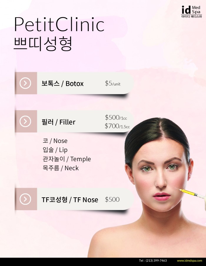 쁘디성형 Petit Clinic | 아이디메디칼스파 2021.10.25 - 쁘디성형 Petit Clinic |ID MEDICAL SPA보톡스 Botox필러 FillerTF 코성형 Tf Nose매달 새로운 프로모션 프로그램이 운영되고 있습니다. 상담을 통해 Special Price를 먼저 확인하세요…