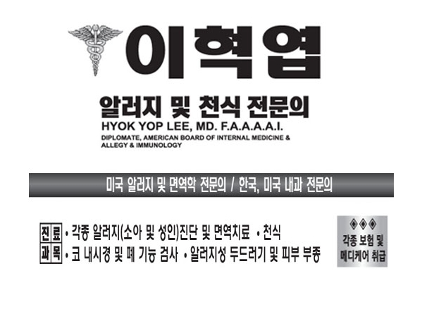 [알러지과] 이혁엽알러지천식전문의 (HYOK YOP LEE, MD. F.A.A.A.A.I.)